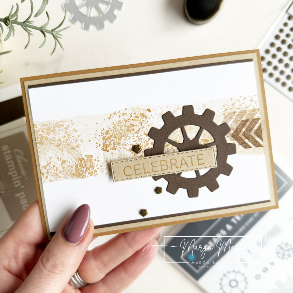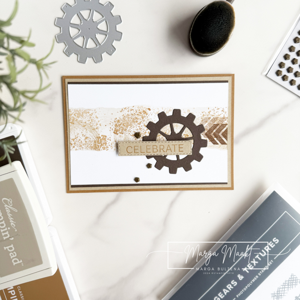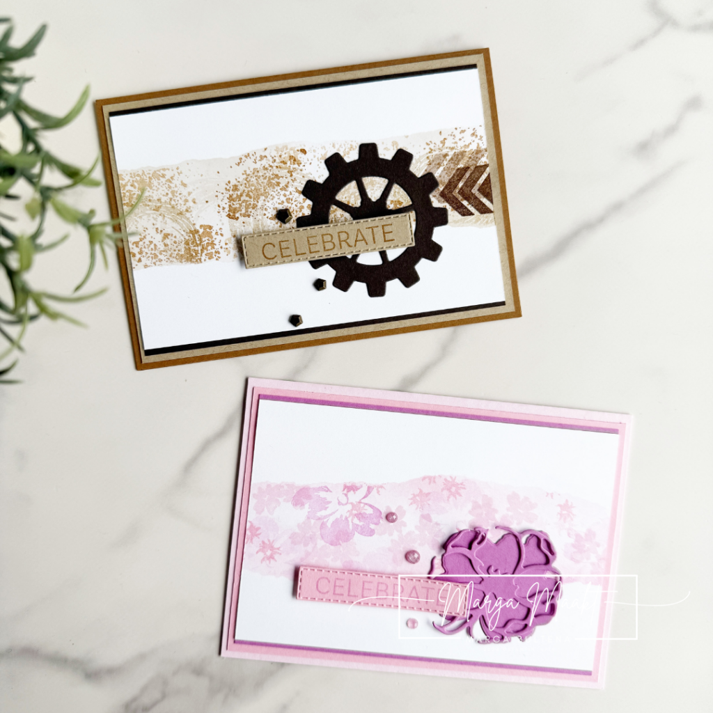 Great cards using the faux paper tearing technique Marga! My preference is the masculine version … love the Gears and Textures bundle. xxxx