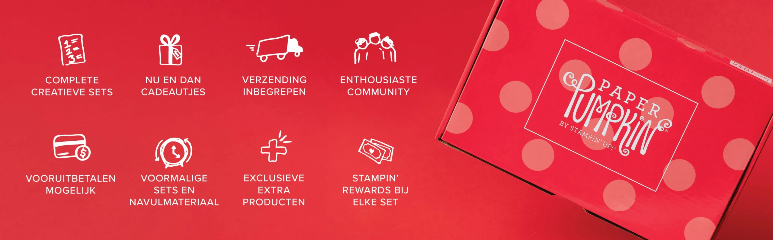 Ben je geïnspireerd geraakt door mijn project(en) en wil je zelf creatief aan de slag maar weet je niet waar te beginnen? Kies dan voor Paper Pumpkin! Hierbij ontvang je iedere maand een kit in je brievenbus met alle benodigdheden en leer je op een creatieve manier kaarten en andere projecten maken. Alle informatie rondom Paper Pumpkin lees je hier.
