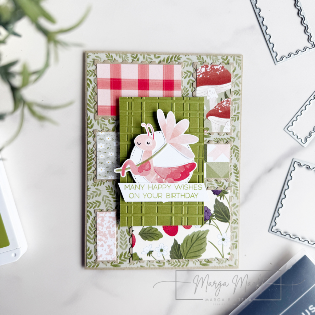 Ik besloot om mijn restjes Designer Series Papier erbij te pakken, gecombineerd met de Perennial Postage stansen. Het is een enorm, drukke kaart geworden, maar hoe langer ik ernaar kijk hoe leuker de kaart wordt!